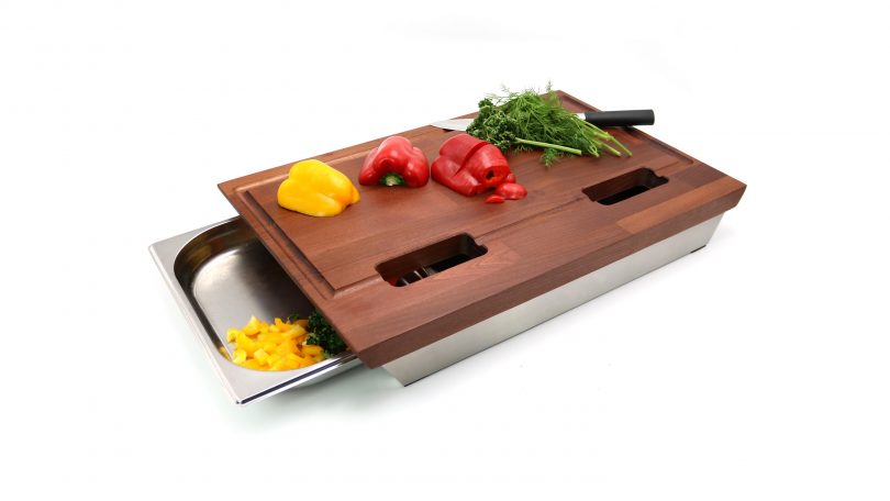 Ob Hobbykoch oder Küchenprofi. Das Schneiden von Gemüse oder Obst ist häufig umständlich und nimmt viel Arbeitsfläche ein. Viele einzelne Schalen werden benötigt. Trotz sorgsamer Trennung vermischen sich die Zutaten auf dem Schneidebrett und bei der Entsorgung fallen Schnittabfälle auf den Küchenboden.Beim Schneiden von Braten, Geflügel oder Wild tritt Fleischsaft aus. Dieser läuft häufig über ein herkömmliches Schneidebrett hinaus oder muss umständlich abgegossen werden.