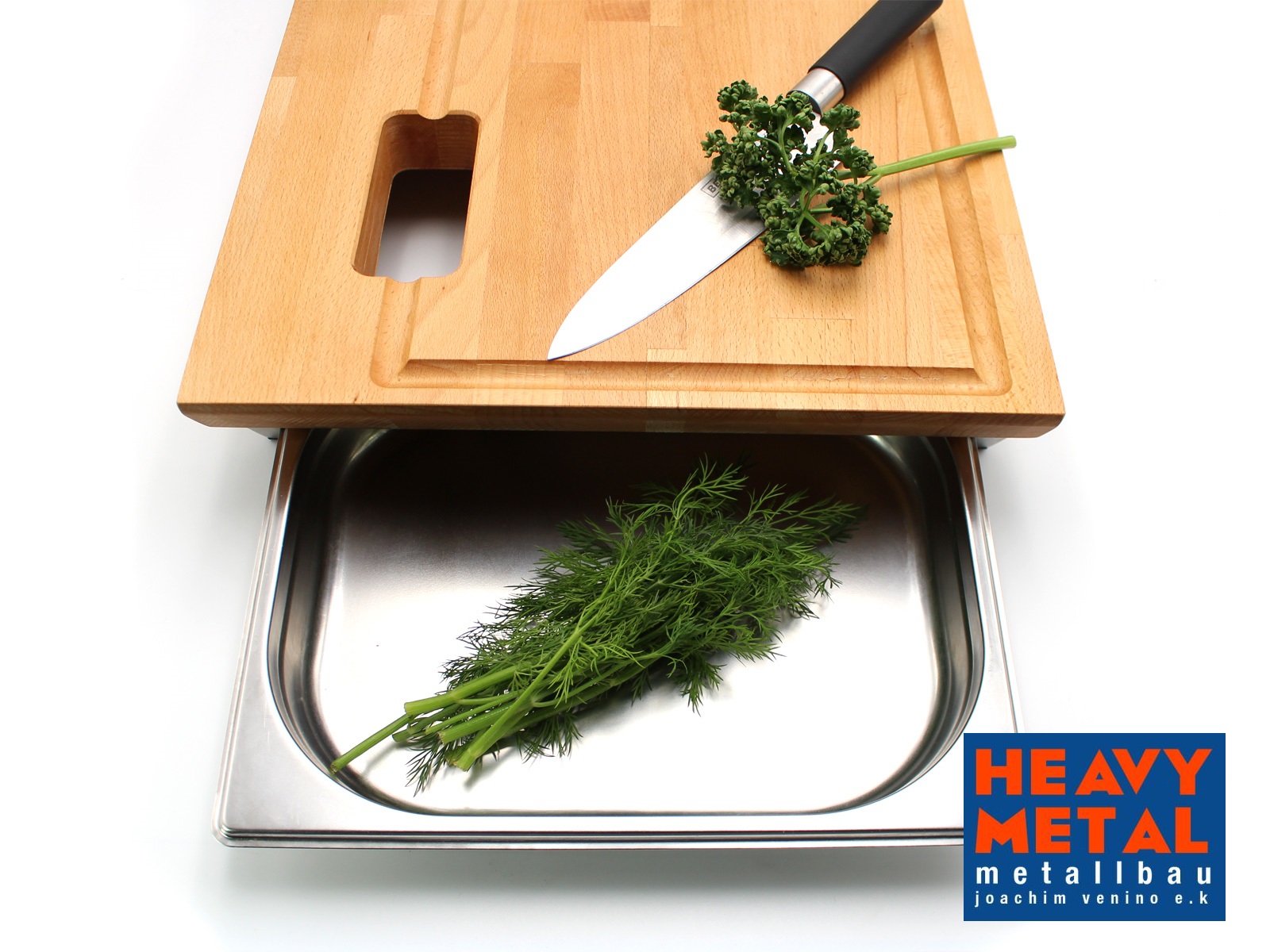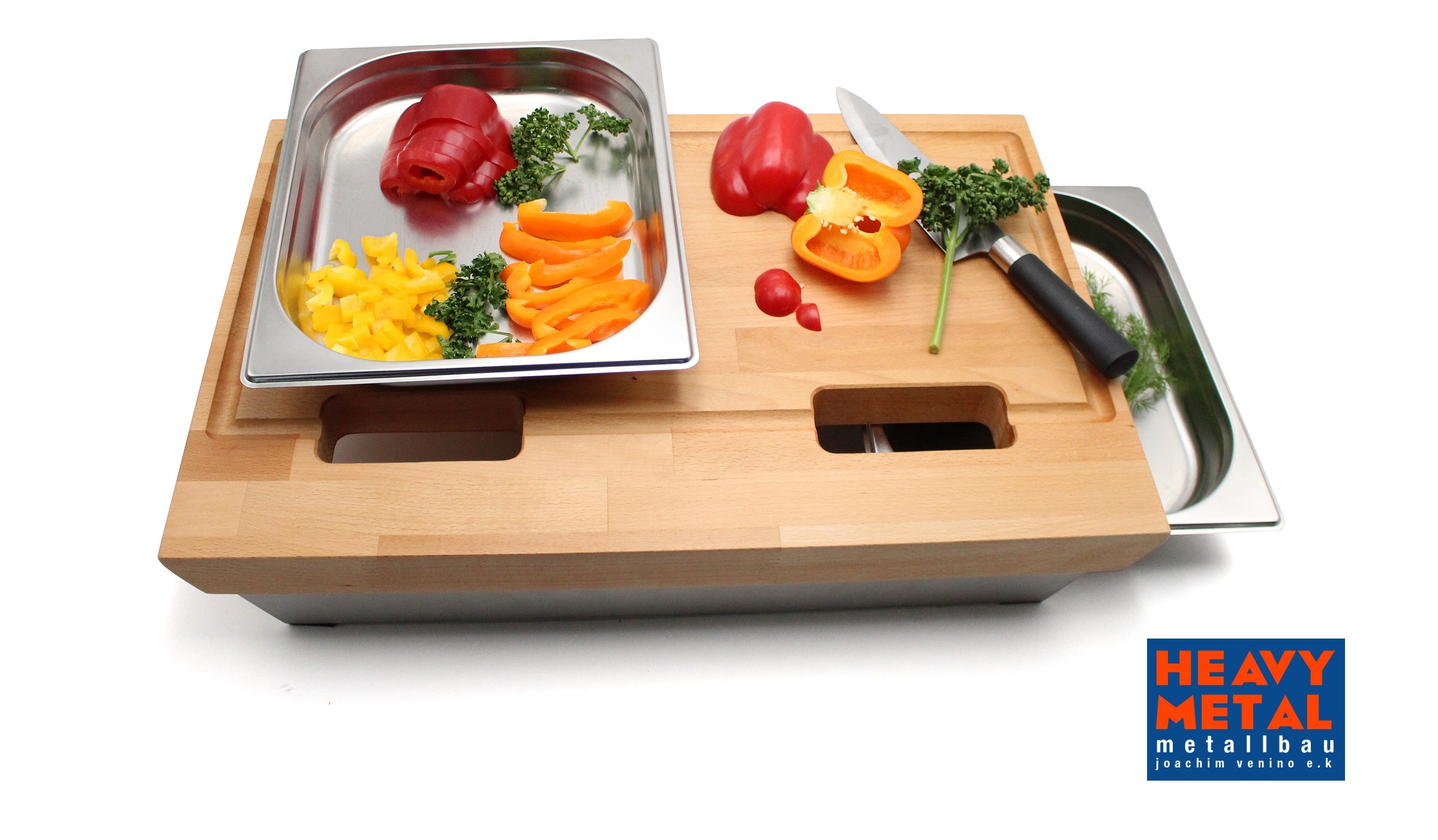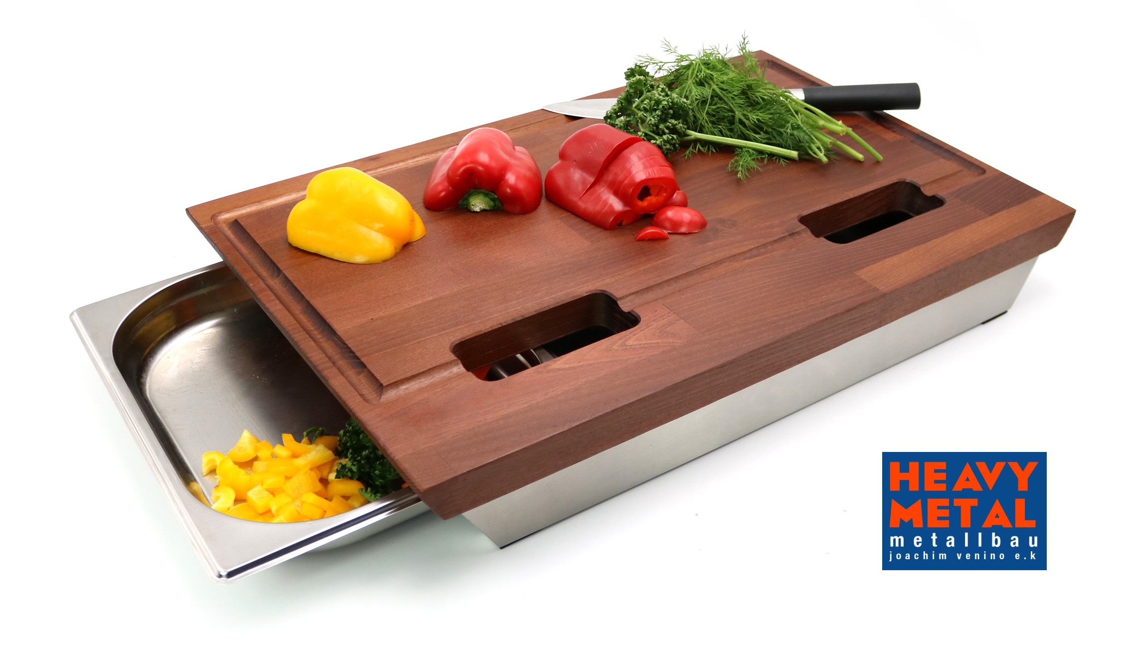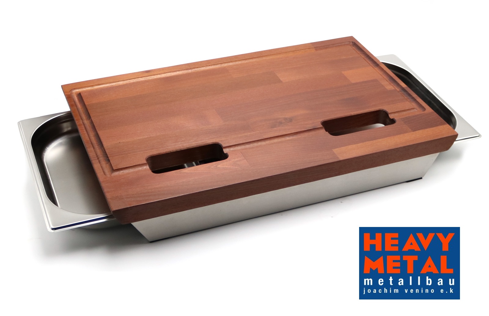 - Schneidebrett mit Edelstahlschienen 60x40x9cm